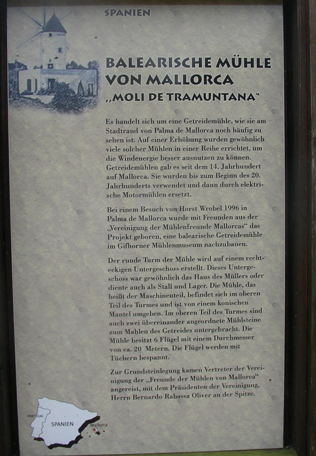 De camí cap a Wolfburg on volíem visitar l’Auto-museu Vokswagen vam passar de forma casual per un dels varis museus que Alemanya té dedicat al molí de vent i d’aigüa que es troba a la localitat de Gifhorn. És un bonic i interessant lloc on passar el dia. Hi ha un gran nombre de rèpliques de molins a tamany real de diferents llocs del món (la major part de països d’Europa) i concretament dos d’Espanya: el típic molí de la Manxa i un molí de les Illes Balears. Realment les répliques estan molt ben aconseguides. Es un recorregut molt agradable de fer, tot ell a l’aire lliure i d’unes dues hores i mitja a tres hores de durada. També hi ha un obrador on fan pa i pastissos amb farina molta a la forma tradicional i que desprès pots degustar sentat a l’ombra dels arbres en una zona de picnic i descans. Fotografies realitzades per Jaume Ques.
