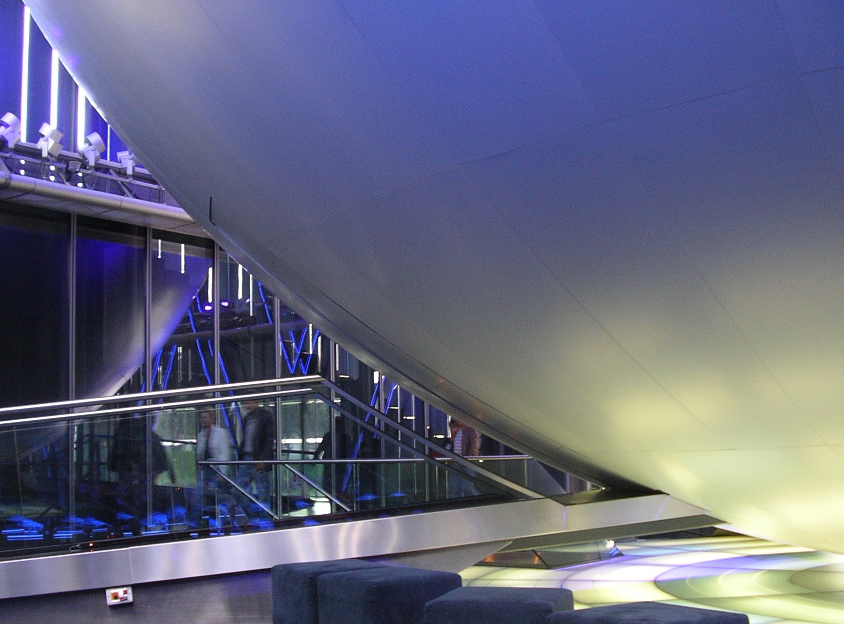 La torre central que és un edifici de forma cilíndrica on es troben els cotxes nous que estan a la venda, disposats en plataformes que abasten tota l’alçada de l’edifici i que són baixats i pujats amb un elevador sorpren per la seva originalitat i tecnologia.