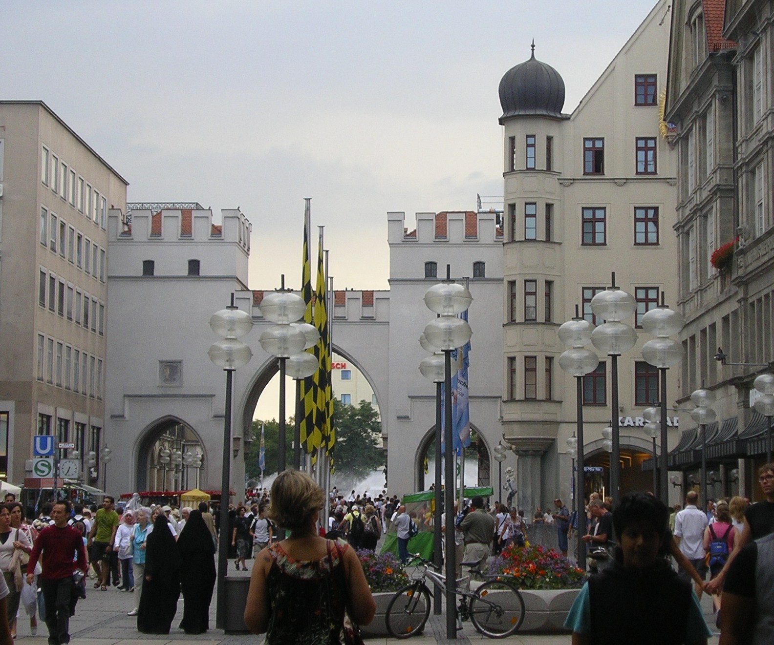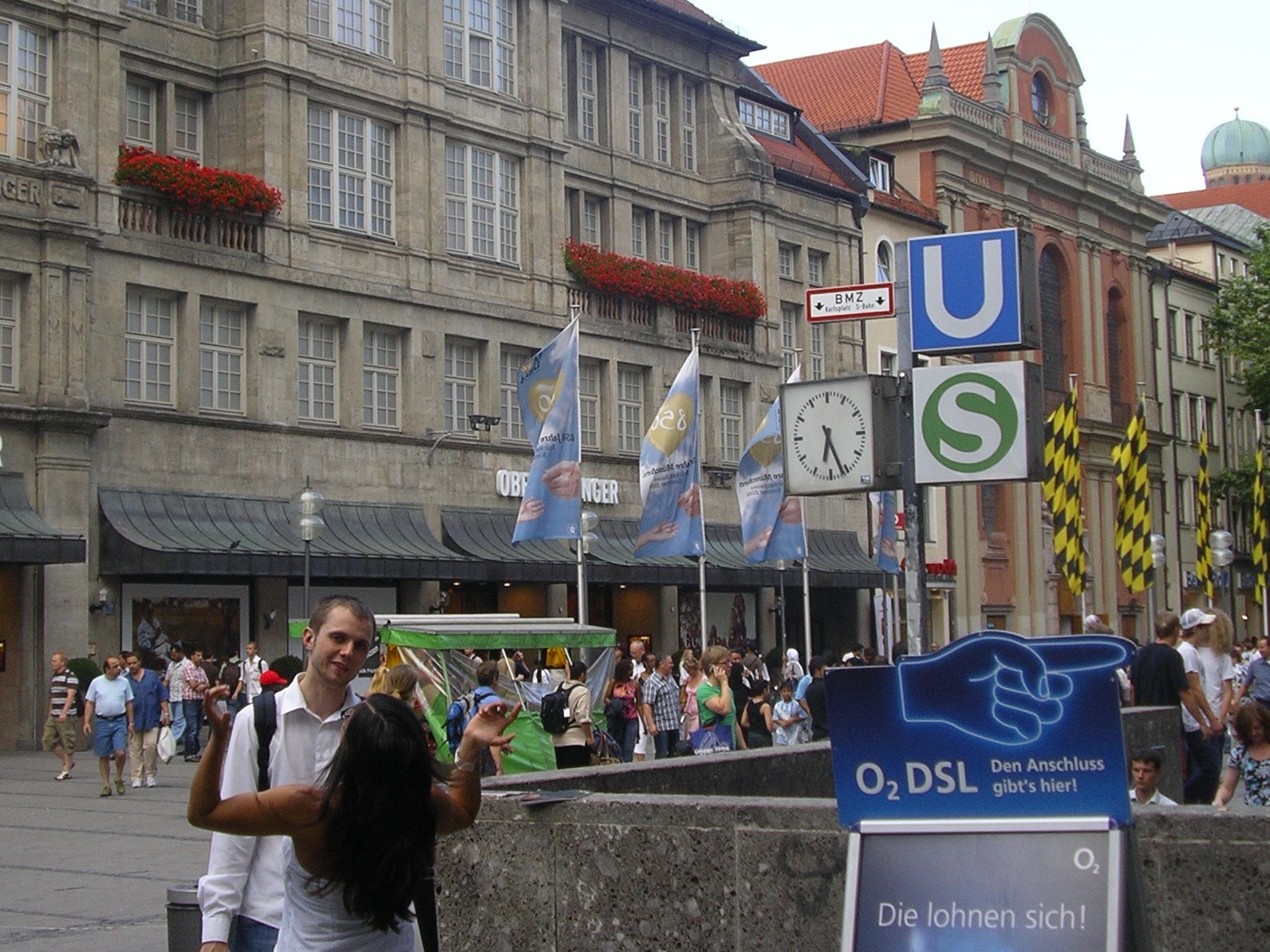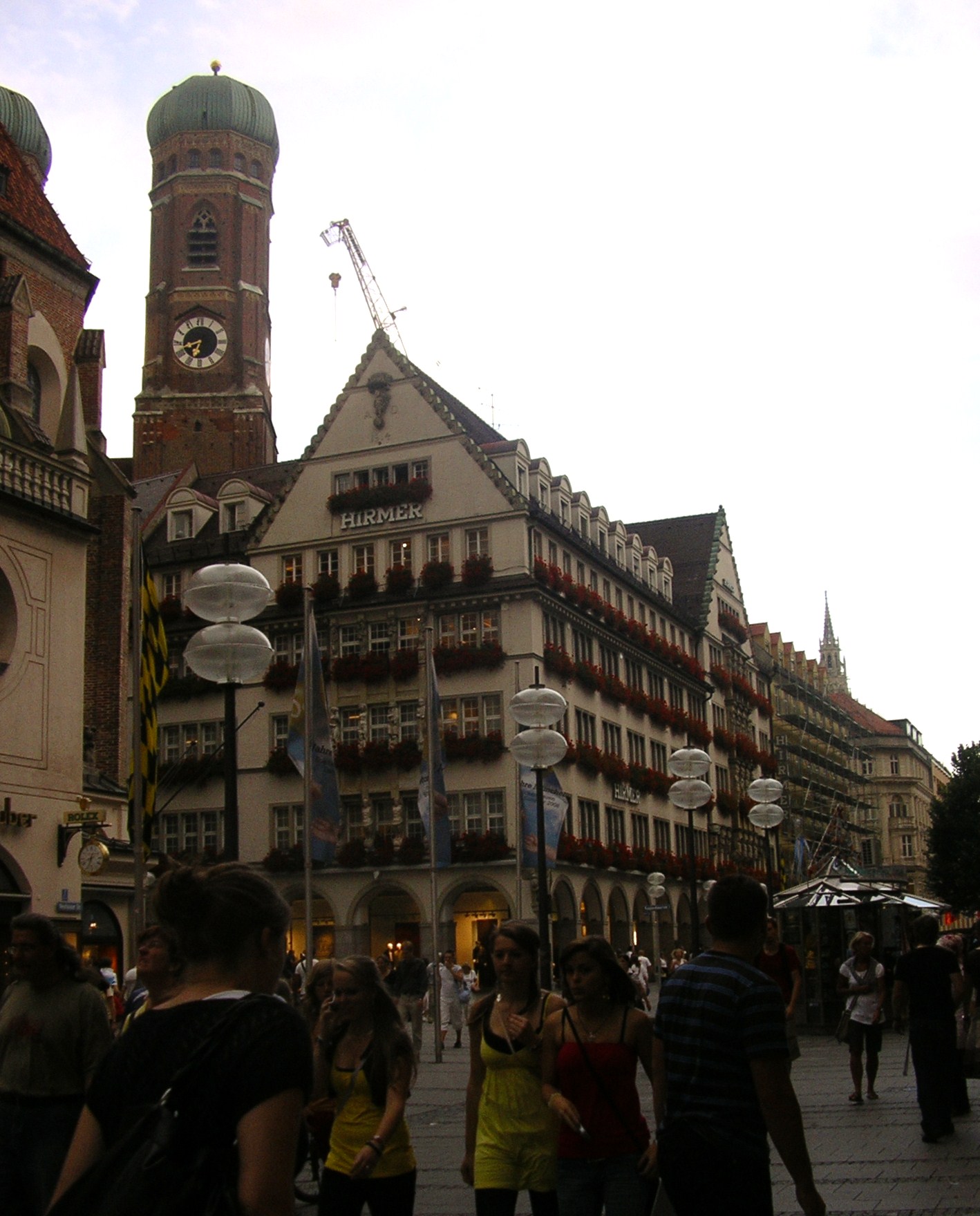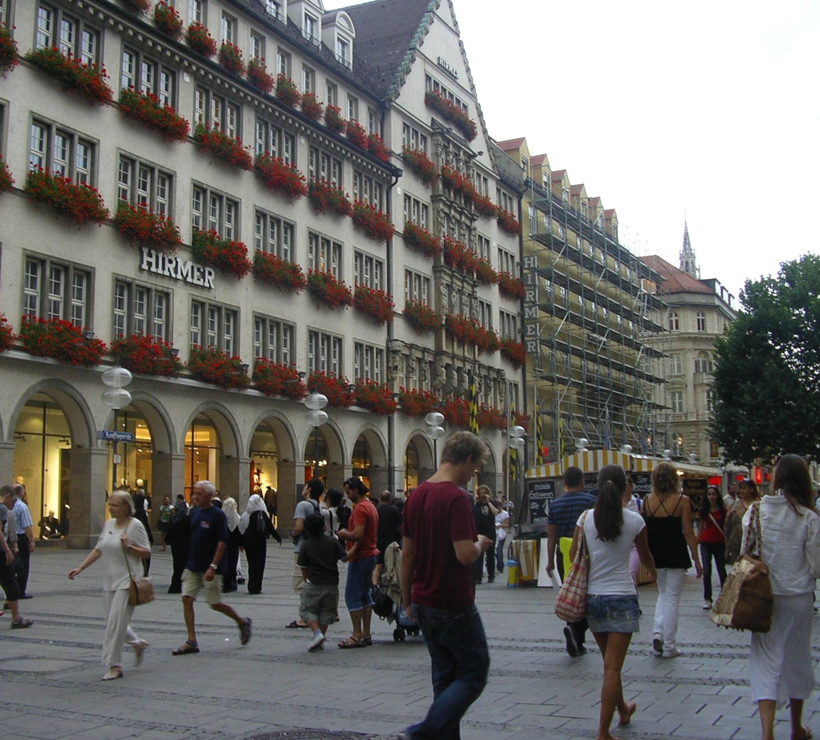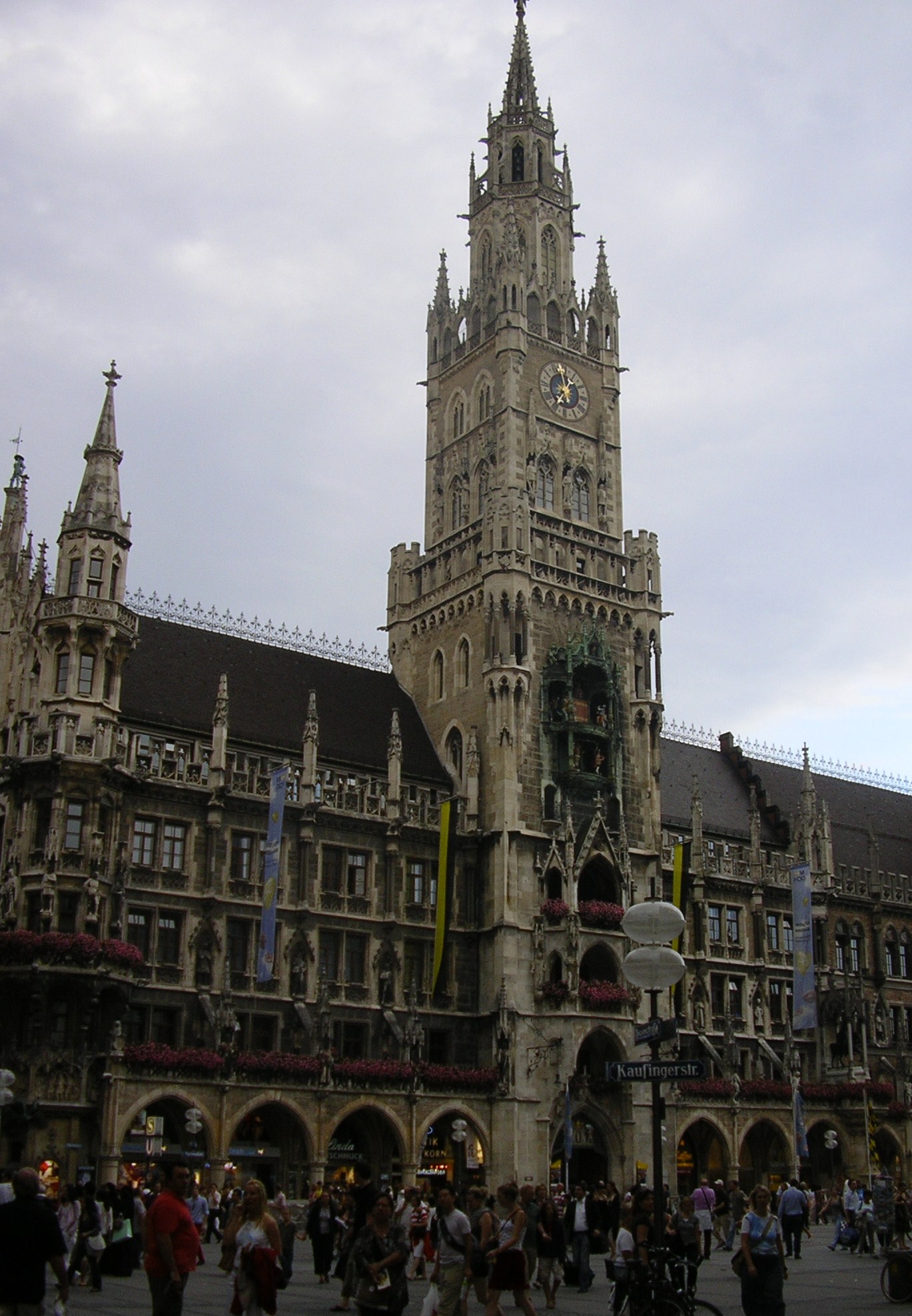 Després d’instal·lar-nos al càmping i dinar vam baixar al centre de la ciutat. Vam arribar a la plaça Marienplatz, centre neuràlgic de la ciutat, punt de trobada de molts joves i lloc de visita obligada. Aquest també és el centre comercial amb innumerables botigues de marques exclusives i d’altres més asequibles. També abunden les joieries i sobre tot els restaurants-cerveseries on es pot menjar plats típics de la regió per un preu molt asequible. Nosaltres vam sopar en un d’aquests restaurants on tots els cambrers i cambreres anaven vestits amb la indumentària regional i amb un pianista que amenitzava la vetllada.