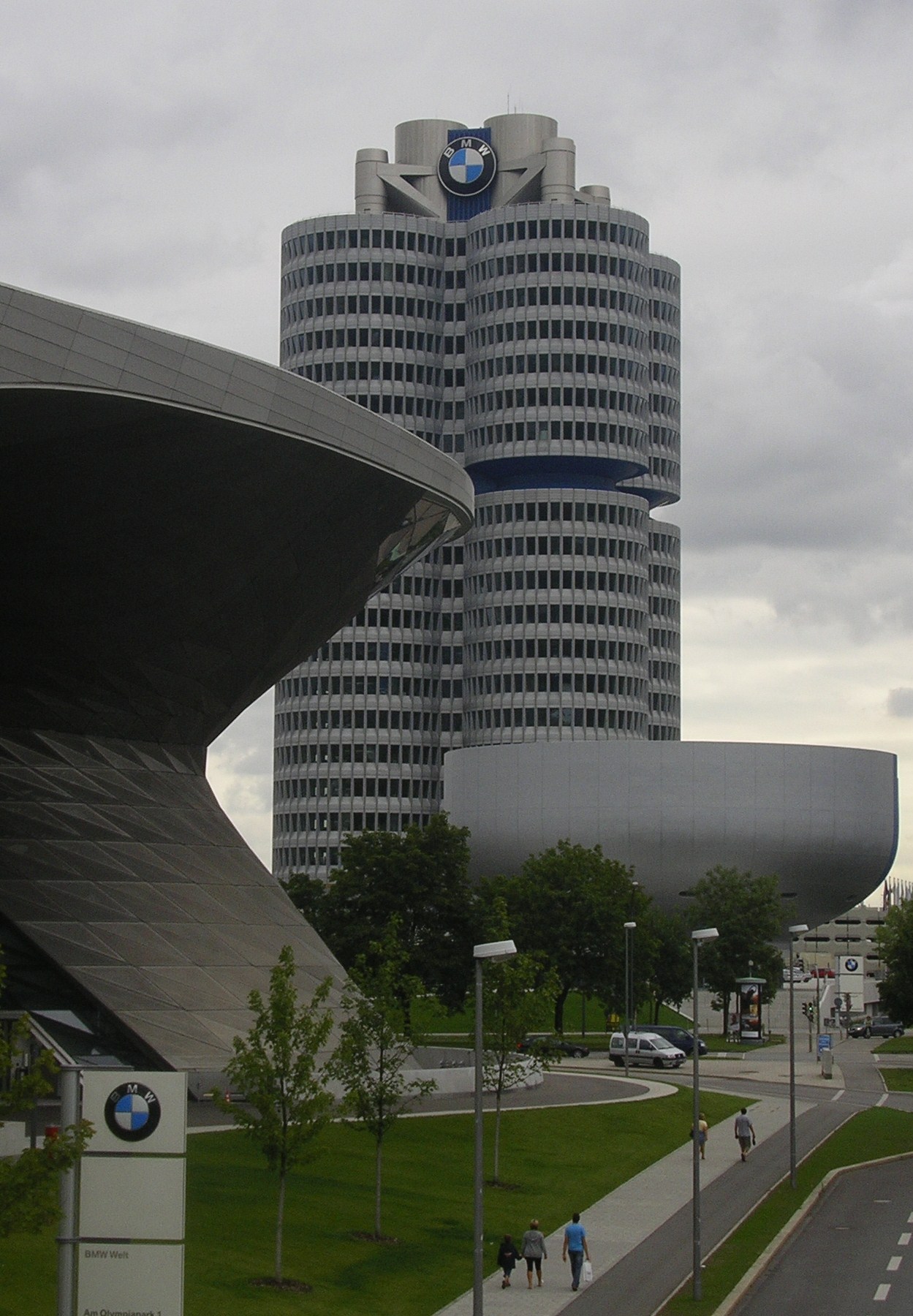 A l’altre cantó del parc es troben les magnífiques i vanguardistes instal·lacions de la BMW que val la pena visitar per la seva grandiositat i modernitat i on també està la seu de l’interessant museu BMW.