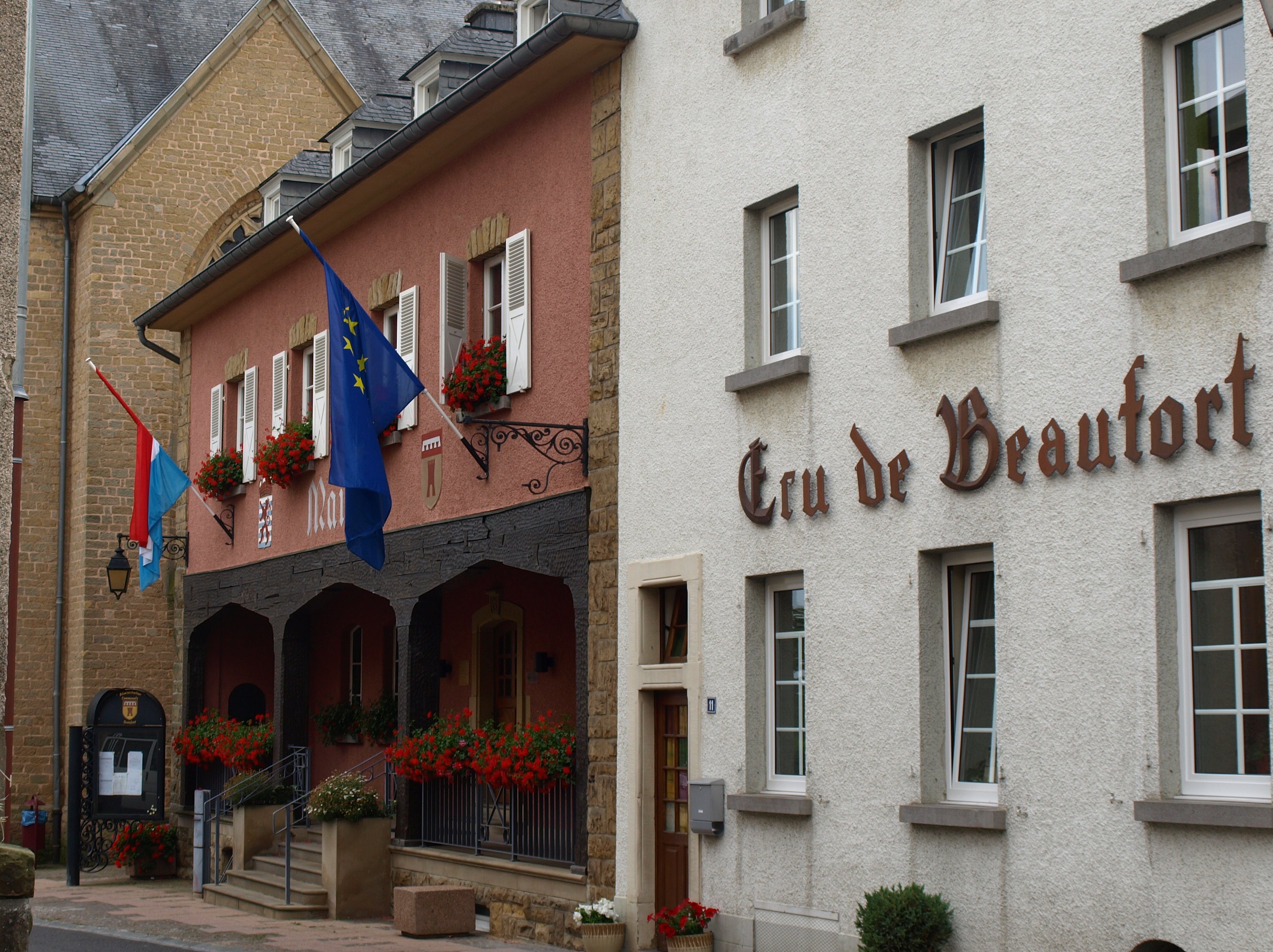 Beaufort com us deia abans no té res digne d’esment, excepte, es clar, el seu castell. Ens va soptar veure els carrers buïts, els cafés i restaurants tancats, i aixó que era diumenge. Tan sols algú en bicicleta que venia de fer algun dels recorreguts de la Mullerthal Trail o de visitar el castell. A la tornada li vam preguntar a la mestressa del restaurant que ho feia que no hi havia ningú i ens va comentar que els autóctons estaven de vacances i els turistes veníen a Beaufort per fer excursions o per gaudir de la piscina i les instal·lacions del càmping.