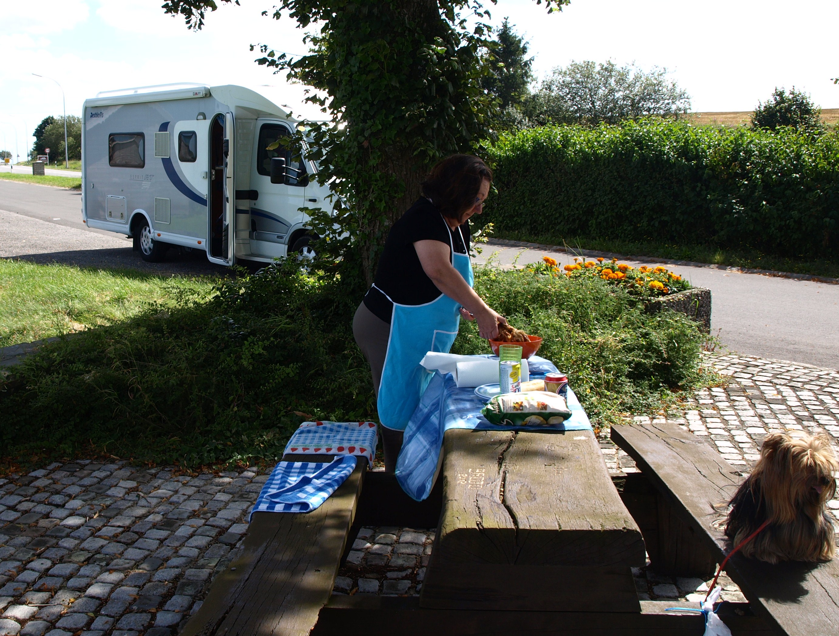 «Parada i Fonda»: dinant en una zona de pícnic de la carretera (curiosament hi havia un monument als soldats americans que van lluitar durant la 2a Guerra)