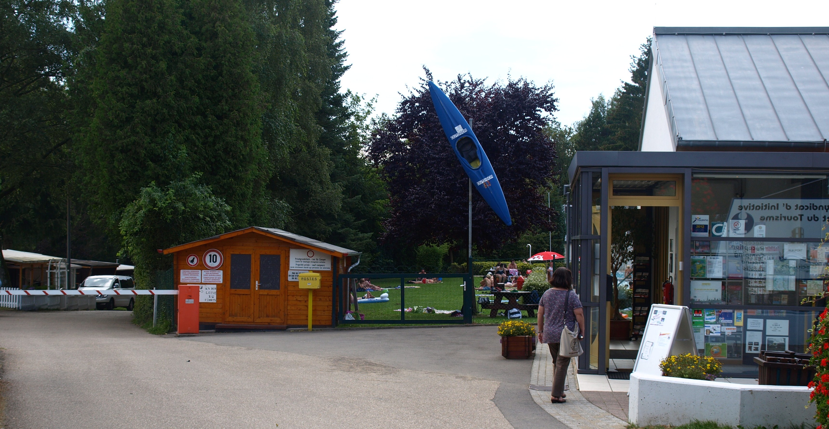 I, el tercer atractiu d’aquesta petita localitat és el càmping que és troba als afores de la ciutat, el nom del qual és «Plage» (no sé a que es deu el nom, com no sigui que faci referència a l’enorme piscina que hi ha a les seves instal·lacions). El càmping però és una bombonera, amb instal·lacions ven cuidades i detallistes (jardineres amb flors per tot arreu, nateja extrema…), uns bungalows i cabanes de fusta maquísimes, i tot una sèrie de serveis addicionals per tal que el visitant es trobi d’alló més bé.