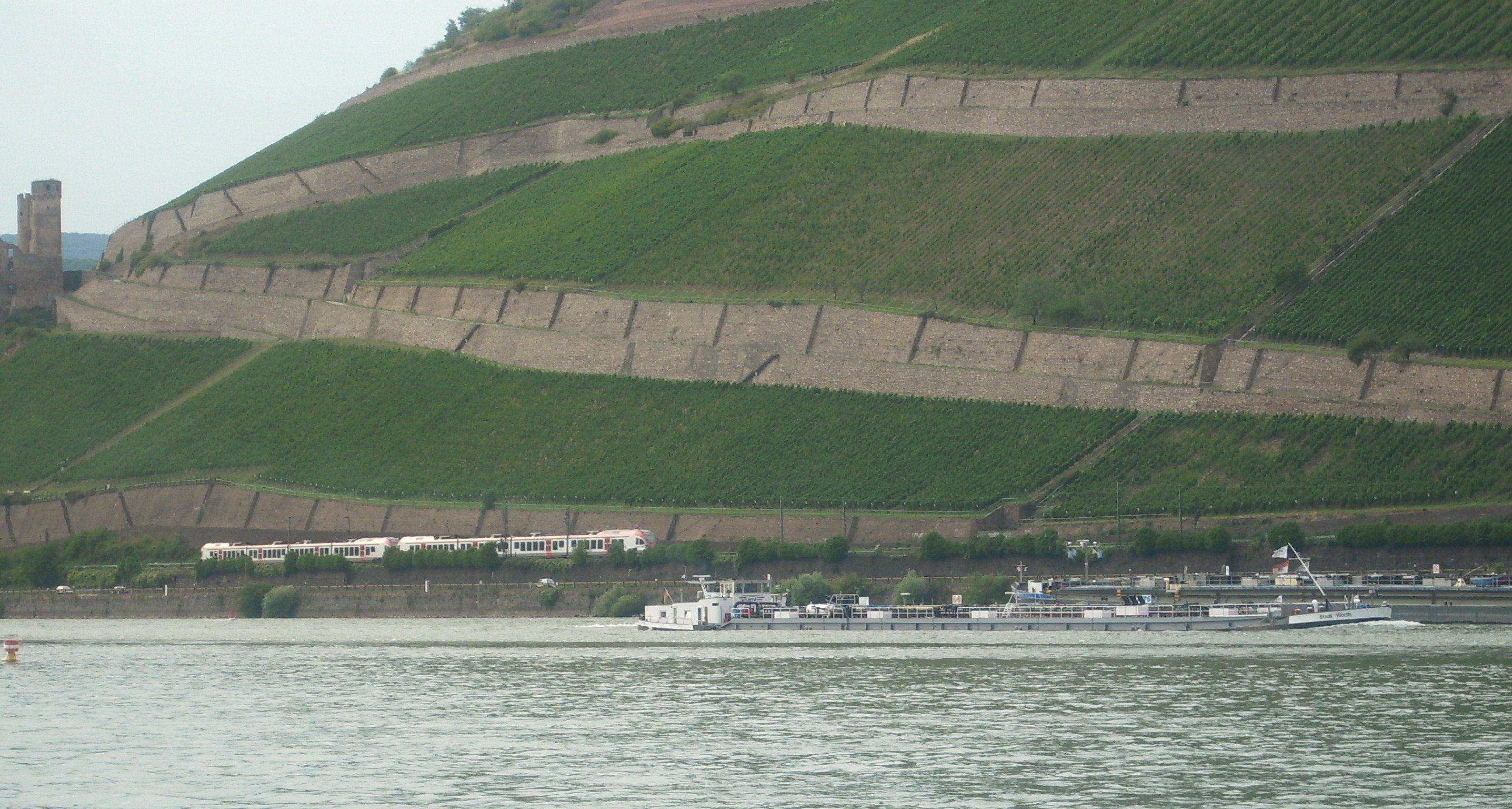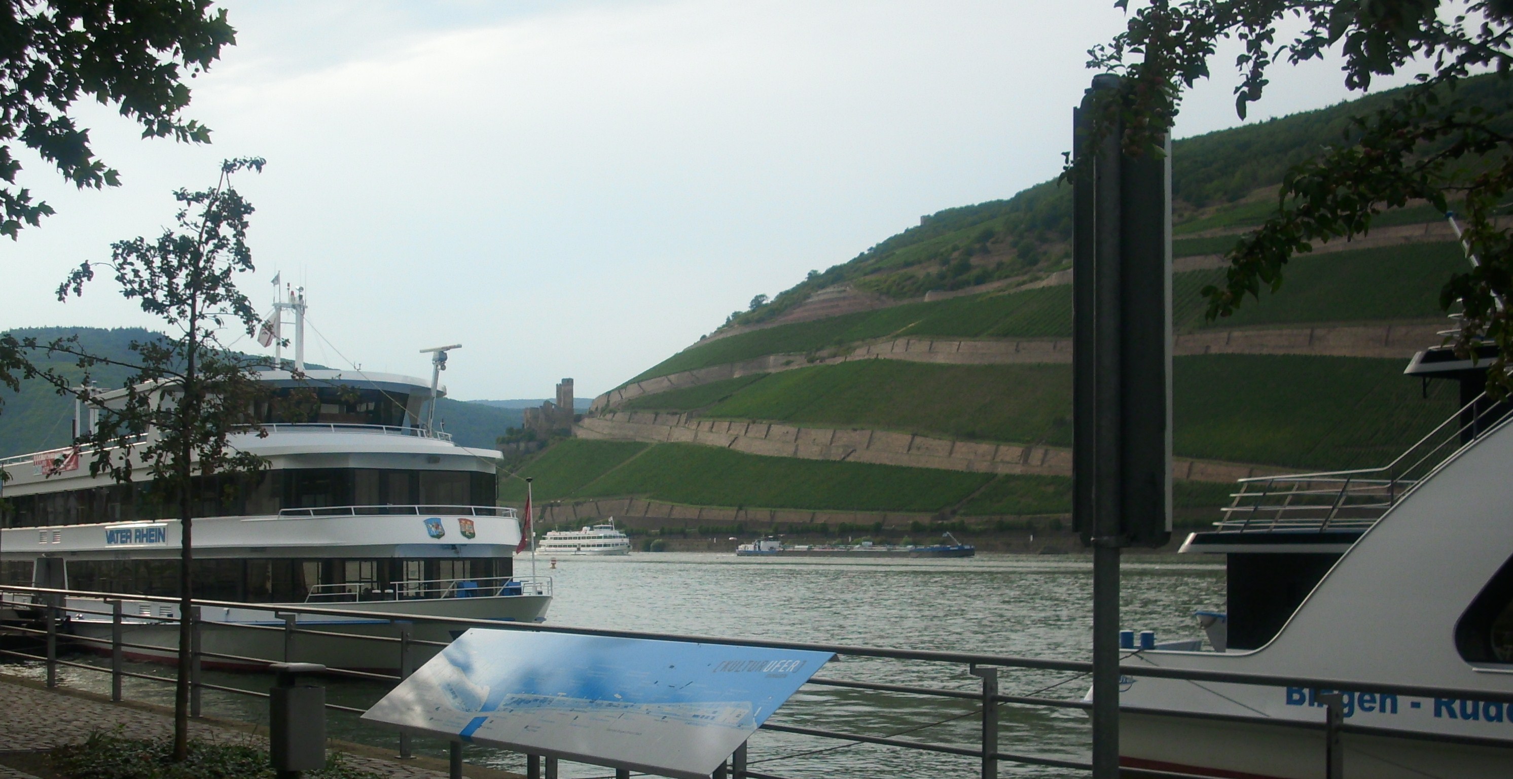 El recorregut per la ribera es impactant: a una banda el paisatge dominat per les vinyes disposades al llarg de la pendent de la colina que costeja durant kilòmetres el Rin i el Mosela i a l’altra un seguit de poblets, cada un amb el seu atractiu i la seva pròpia identitat.