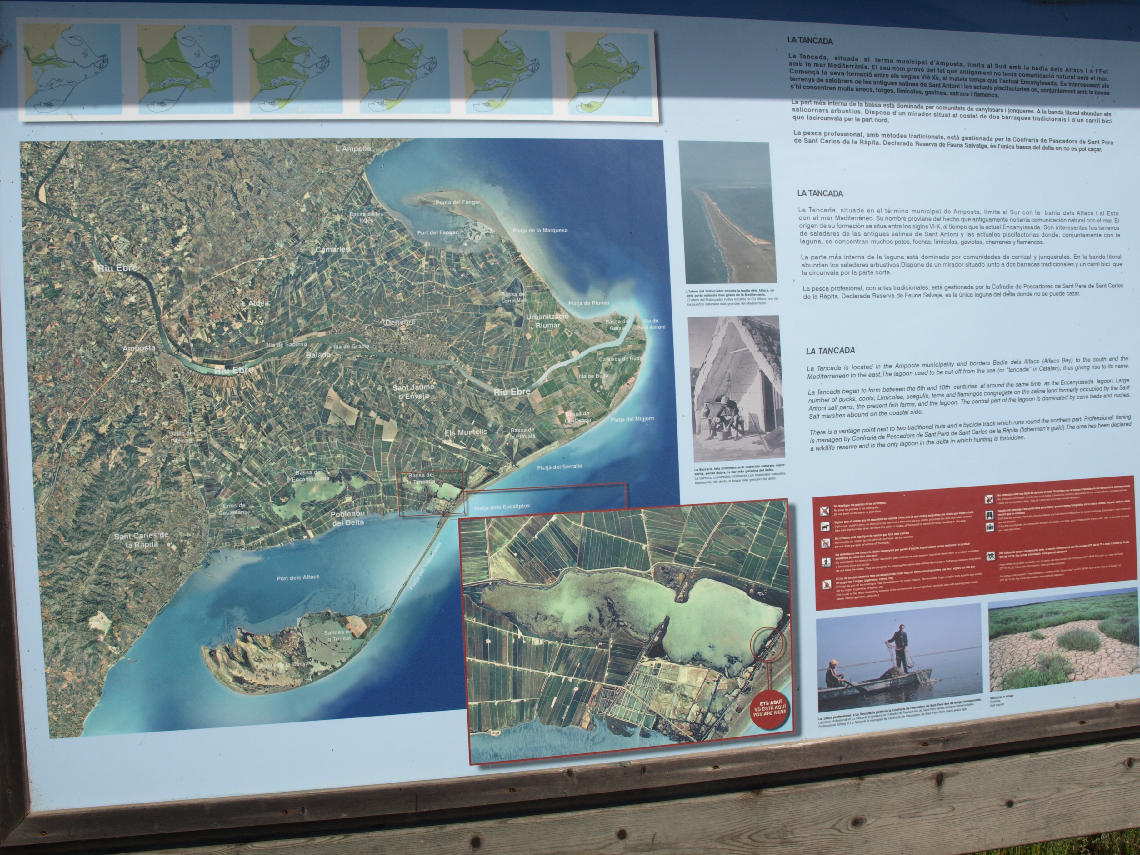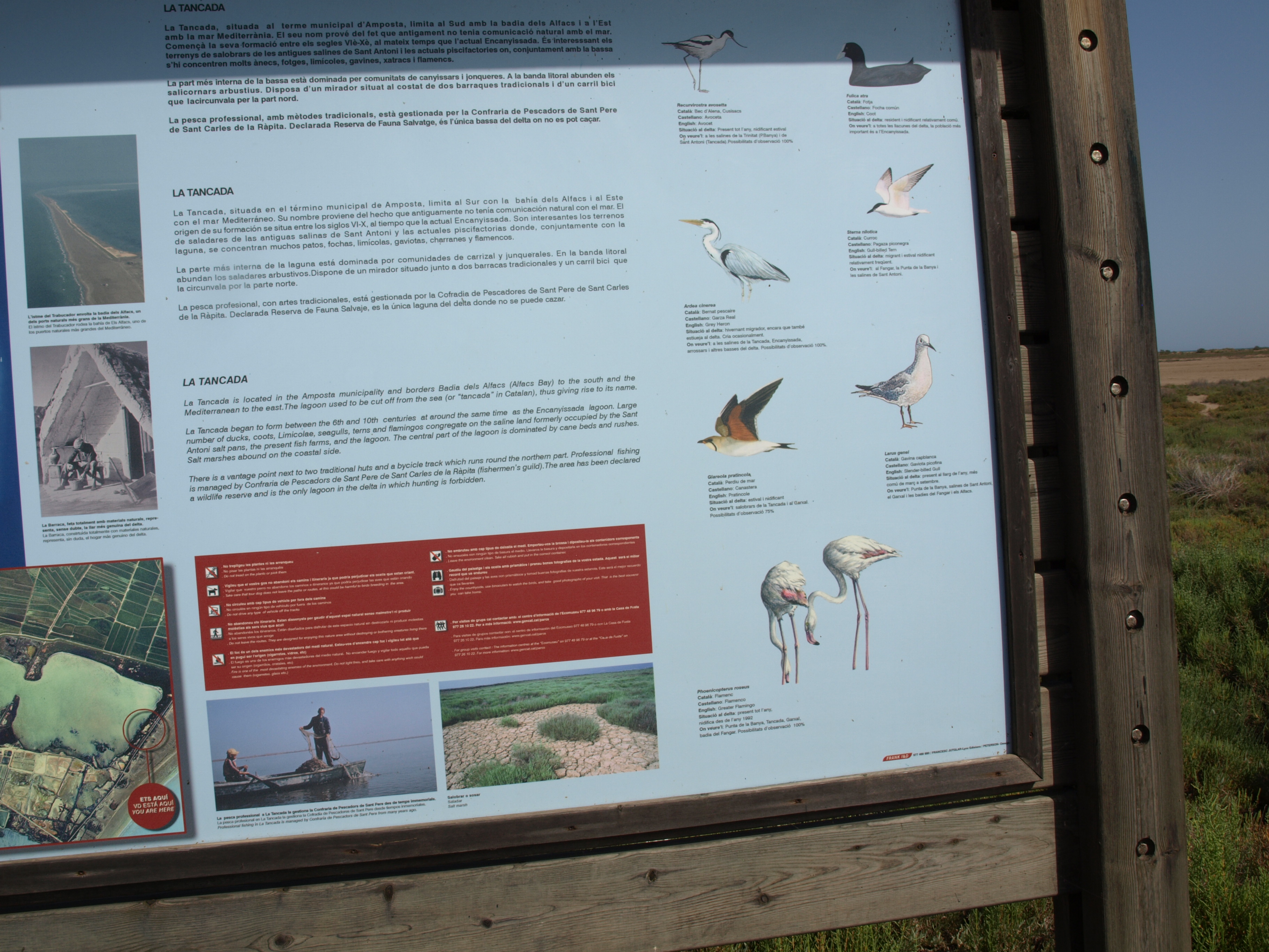 També es troba molt aprop la carretera que va a la Tancada, llacuna on hi ha un observatori per contemplar i fotografiar les diferents espècies d’aus que visiten i aniden en aquests indrets. Seguint la mateixa carretera es pot arribar fins a la Punta de la Banya, a travès del Trabucador, estreta franja de terra que s’endinsa al mar amb les seves inmenses platges a banda i banda. En àmbdues platges pots veure a la tarda gent banyant-se o collint petxinetes o escopinyes. El Trabucador és una zona on, quan nosaltres vàrem anar, estava permès fer càmping lliure. Nosaltres vam veure moltes autocaravanes amb la taula, les cadires i inclús parasols plantats fora com si estiguessin instal·lats en un càmping.