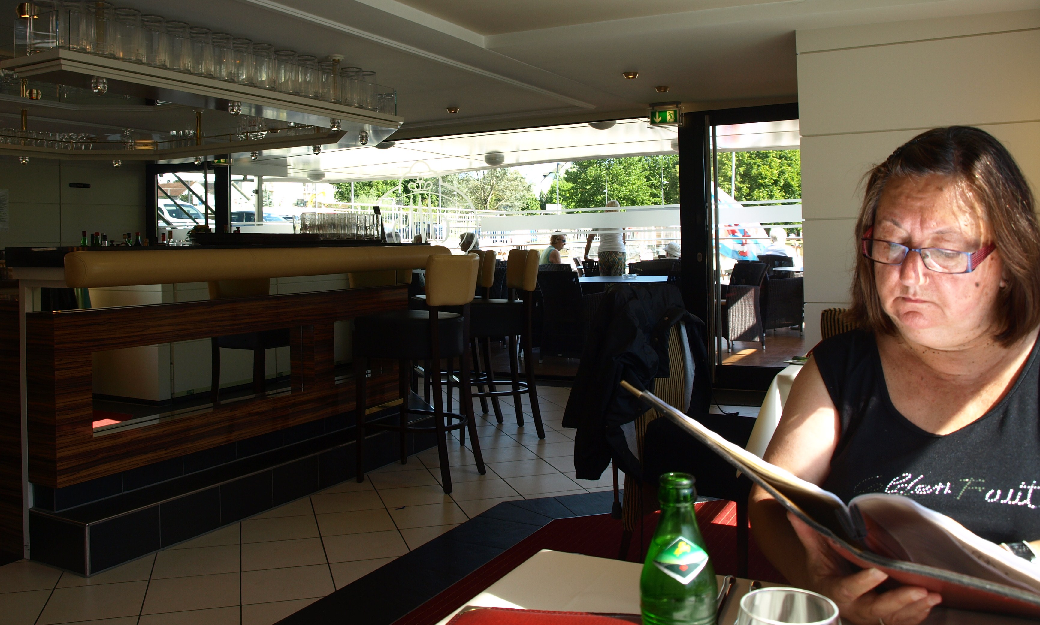 La planta baixa i la primera planta estan destinades a zona de restaurant i les terrasses exteriors són per aquells pasatgers que no volen dinar al vaixell. Nosaltres vam triar restaurant ja que com feia pocs dies que havia estat el meu aniversari, pensarem que aquesta era una bonica forma de celebrar-ho. Em va sorprendre que els plats teníen un preu raonable tot i el luxe de les instal·lacions.
