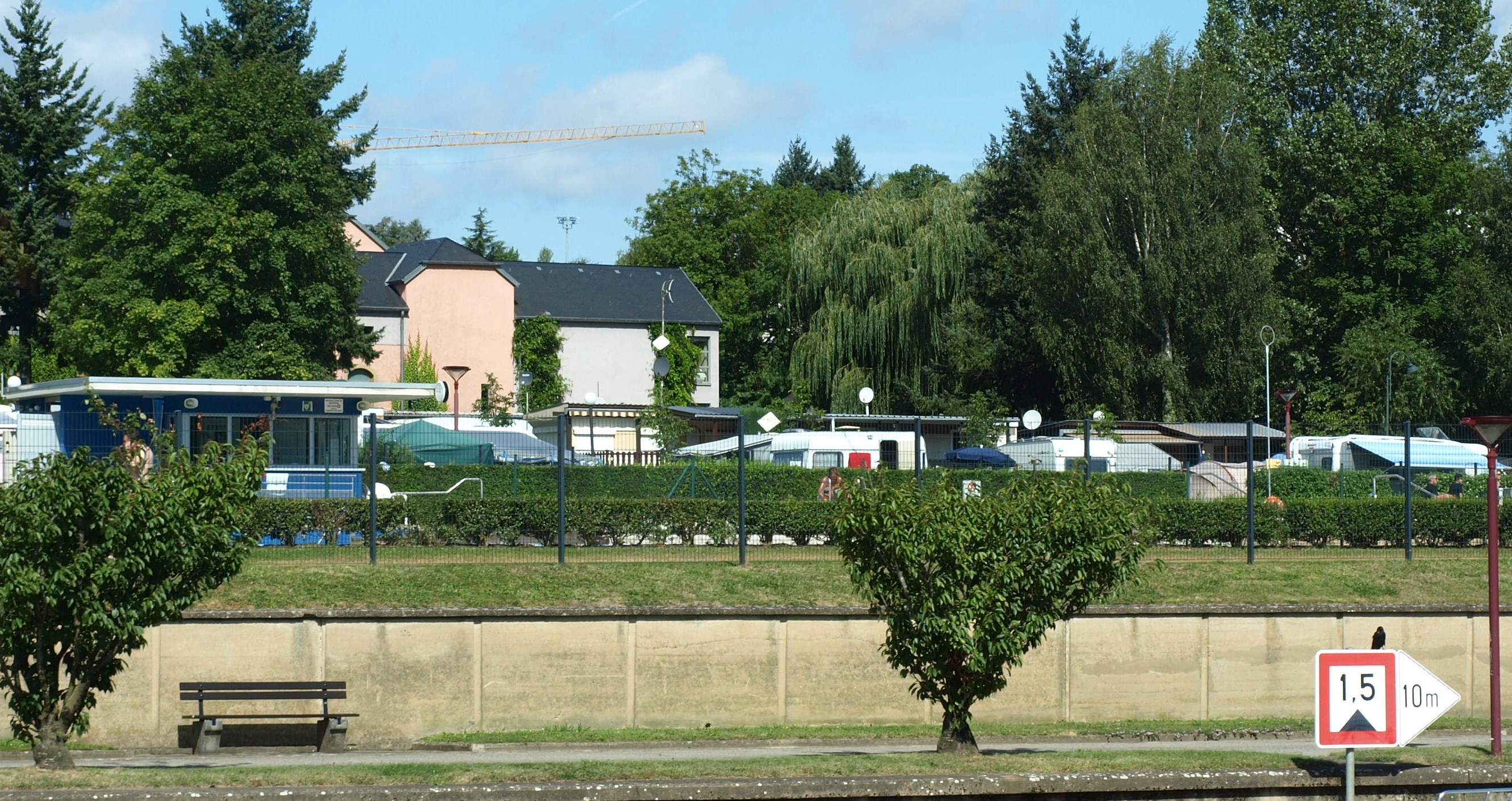 Comencem per la pitjor experiència de la nostra visita a Grevenmacher. «La route du vin» que així s’anomena el càmping era en molts aspectes propi d’un país del tercer món i no d’un país desenvolupat. Tot i que amb l’estada estava inclosa la utilització de les piscines (que per cert són piscines municipals i l’entrada a les instal·lacions era per fora del càmping), el càmping tenia importants mancances. Però el què més ens va soptar era la forma com s’havia de fer el buidatge del W.C. químic. Es tractava d’ua arqueta a terra, fora de les instal·lacions del càmpìng, per més detall en un pàrking que hi havia a l’entrada. Era un forat d’un metre quadrat tapat per una planxa de ferro que pesava com «un mort». Quan aixecaves la planxa et trobaves amb una mena de pou a ran de terra, al que, si no anaves amb compte, podíes caure (és a dir, un autèntic perill per qualsevol) ; i com a complement una mànega amb aigüa corrent. Si ho feies a la nit (que era el normal pel lloc on estava), havies d’anar amb compte per no caure ja que a més no hi havia llum suficient. Tot un poema!. Llàstima que no vam tenir la idea de fer una foto per poder penjar-la al blog i a l’endemà ja no vam tenir ocasió ja que uns treballadors estaven fent obres i la maquinària utilitzada no ens deixava acostar-nos.